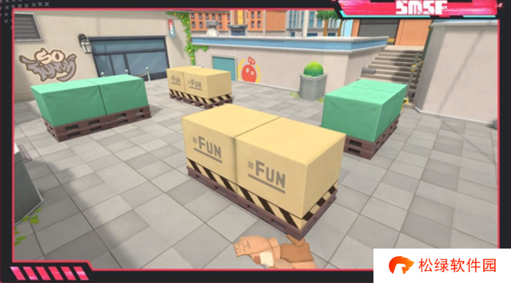 这张地图充满涂鸦和纸箱,肠肠可以在纸箱后面躲藏,等待出击机会,也可以大胆进攻,给敌人一个猝不及防的打击。