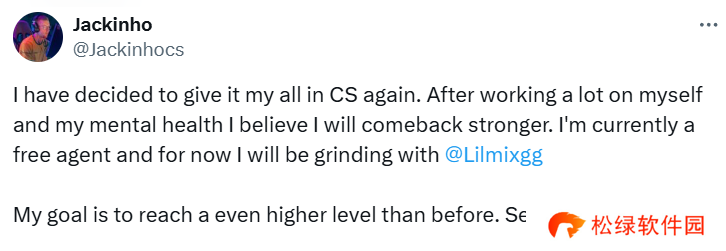 “我决定再次全力以赴地投入CS。在经过大量自我提升和关注心理健康后,我相信我会以更强的姿态回归。目前我是一名自由选手,现在会与