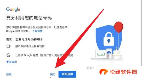 7、下一步是填入账号的绑定信息,填完后谷歌提示的页面,点击跳过。