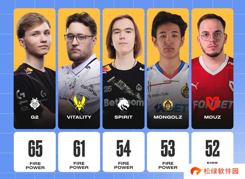 正赛阶段队伍平均火力值排行榜:G2双枪撑场笑傲江湖
