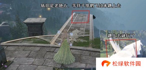 5、接着等到千纸鹤飞过来之时跳跃上去。