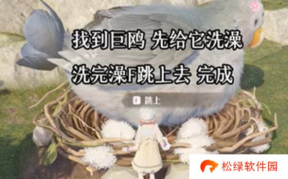2、找到巨鸥,接着给它洗澡,洗完之后跳上去。