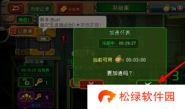 3、接着,使用所获得的加速怀表,轻触确认按钮即可实现快速补给。