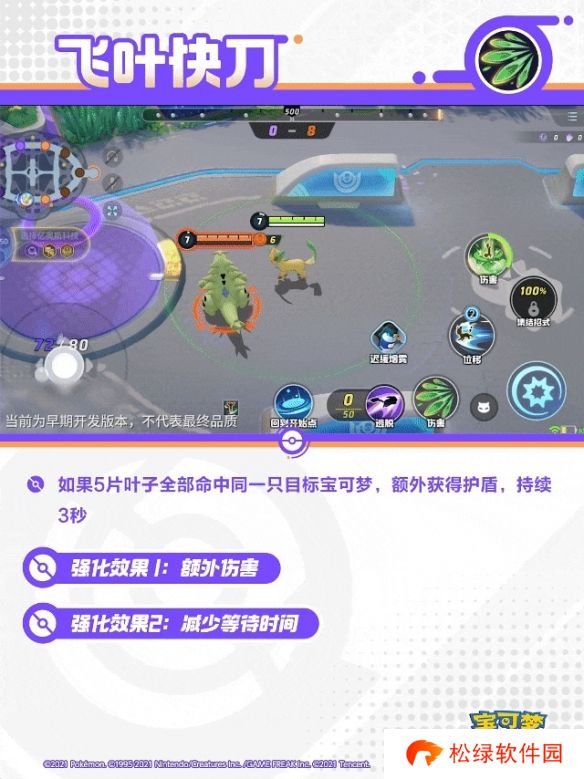 如果5片叶子全部命中同一只目标宝可梦,额外获得护盾,持续3秒。