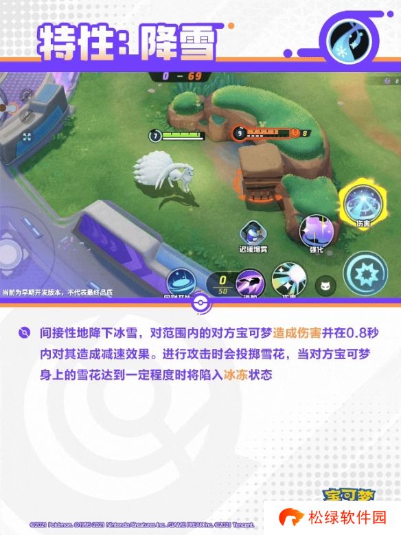 进行攻击时会投掷雪花,当对方宝可梦身上的雪花达到一定程度时将陷入冰冻状态。