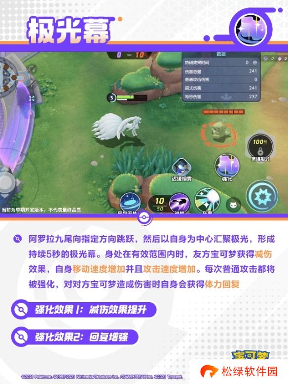 阿罗拉九尾向指定方向跳跃,然后以自身为中心汇聚极光,形成持续5秒的极光幕。