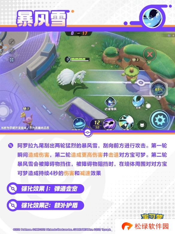 第二**风雪会被障碍物挡住,被障碍物阻挡时,在墙体周围对对方宝可梦造成持续4秒的伤害和减速效果