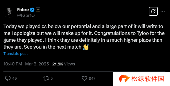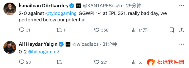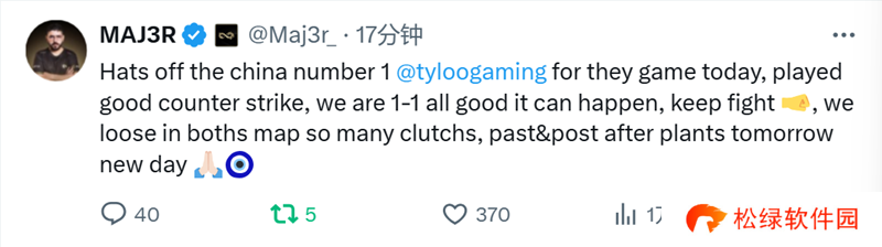 Engin Küpeli | MAJ3R:向中国排名第一的TYLOO战队致敬,他们今天的比赛中打出了精彩的CS。我们现在1-1,这没什么问题,这种情况是可能发生的。继续战斗。我们在两张地图上都输了很多关键局和下包后的局势。明天又是新的一天。