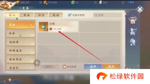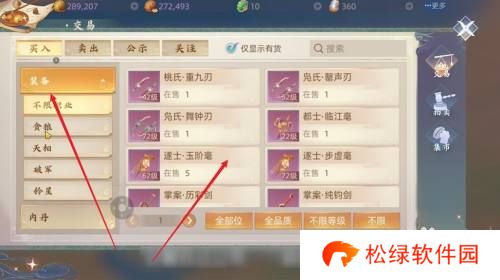 在交易行里,点击装备,然后点击右边的出售的装备。