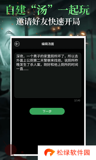 汤面:有兄弟三人,感情非常好,吃饭睡觉都在一起。三弟非常依赖自己的两个哥哥,每天晚上睡觉都要睡在大哥和二哥的中间。有一天,大哥掉进河里死了,当天晚上,三弟把二哥杀了。汤底:大哥和二哥是双胞胎。大哥意外死了,尸骨无存。晚上睡觉时,三弟因为没有睡在两个哥哥中间,所以一直睡不着。于是,他把二哥杀了,竖着切成两半,一半放在自己的左边,一半放在自己的右边。这样,他又能睡在“两个哥哥”的中间了。第五个人汤面:乡间小路上,五名男子一同前行。突然,天上哗哗地下起雨来,五人中的四人加快了步伐,然而第五人一点也不见着急。最终,五人同时到达目的地。加快脚步的四人成了落汤鸡,而第五人身上却一点也没湿汤底:四个人在抬棺材。第五个人是躺在棺材里的死人。食物中毒汤面:当我们开着救护车赶到食物中毒的那户人家时,所有的人连站都站不起来,脸上全无血色。正当我们打算将危险性最高的老人先抬上救护车时,所有人却异口同声地大叫:“不用救他!”汤底:老人已经生病去世了,家人是为了给他准备葬礼才聚集到一起,不幸集体食物中毒了。汤面1.绿牙男子清晨起来刷牙,发现自己牙齿是绿色的,他吓疯了过去。汤底1.男子是一个守天平间的看管人,最近天平间有尸体丢失找不到去处,他报警,**在每俱尸体上涂抹了一种荧光粉,在夜间会显现绿色,再次尸体消失后**依然没有线索,男子早上起来刷牙发现自己牙齿是绿色。(他有梦游异食癖,他半夜梦游起来吃尸体)汤面2.舞我六岁那年,外公去世,我和亲人一起去祭奠,和姐姐玩捉迷藏,然后我对母亲说了句话把她吓昏了过去,我说了啥?汤底2.我去参加外公的葬礼,同行的还有比我大两岁的姐姐,我和她完捉迷藏我没有找到她没想到她躲在了纸做的房子里,当纸房子被点燃,我看见姐姐在跳舞,我对妈说,妈姐姐在那房子里面跳舞,因为姐姐被烧死了,我一直记得这个事。汤面3.(此题开始可能有作者但作者不一定清楚,比较不像网题的新手题)女孩醒来总有新伤,她把父亲告上法院,法院却不受理汤底3:母亲把妹妹害死了,从那以后父亲原本温和的面容变得狰狞,时常回到家里就家暴母亲,终于在几天前杀了母亲,然后也自杀了,留下女孩一个人崩溃到精神失常有了精分,但她不知道,后来女孩每晚都会分裂出父母和妹妹的人格,重演了一遍母亲害妹妹,父亲家暴母亲杀母亲等等,所以每次醒来总是新伤不断,但女孩忘记了这一切,只记得冲击力最大的事:父亲杀了母亲,于是醒来后跑到法院起诉父亲,父亲已经死去无法判刑,所以法院不受理此案。汤面4.夜里,男人开着车行驶在乡间的小路上,突然他肚子很痛于是从副驾驶上的一叠纸中抽出了几张,来到田野上他突然笑了又哭了,第二天男人死了汤底4:男子的妻子不见了,这些纸都是他寻他妻子的寻人启事,他开着车在满世界找他妻子,去贴寻人启事,经过小路的时候男人想上厕所,拿着纸去往田间,却看见自己妻子被人杀死而且做成了如稻草人一样的模样,他笑是因为找到了妻子,哭是因为妻子死了,他悲痛万分,第二天他上吊自杀去陪妻子。汤面5.小红偶然打了一个喷嚏,小明和小刚同时死亡。——诚惶汤底5:(此题双底)一.小红是个塔吊司机,她打喷嚏的同时导致起重机重物松开,在下面同时作业的小明小刚被重物砸死。二.小红是一个路人,他打个喷嚏吓到了两个正在搬运大型方块状玻璃的搬运工其中的一个,小红没有看见玻璃,而这两人正是小明小刚,他们中一人被吓到,重心不稳向路边走去,这时候正巧一辆车经过将两个搬运大玻璃不稳的人撞死。汤面6.小明穿着雨鞋,和他的狗死在空旷的地方,血肉模糊。汤底6:小明是一个喜欢炸鱼的渔民,他将鱼雷扔向水的方向向空旷地方跑去,没想到他的狗以为主人想扔个东西叫自己捡回来,狗挑起叼着鱼雷陪小明一起跑过来,最终小明和狗一起被鱼雷炸死。汤面7.小明死在空旷的地方,血肉模糊。汤底7:小明是一个偷渡飞机的偷渡者,他躲在飞机的货物贮藏间里,当飞机穿过平流层的时候出现了一点点小鼓掌,导致货物贮藏间里恒温系统故障,也就是空调不工作了,最终小明冻死在货物贮藏间,而后货物贮藏间出现了一个不紧锁的门,小明掉下去,被摔得血肉模糊。(此题重点是他被冻死的)汤面8.小明半夜起来喝水,然后把灯关上继续睡觉,醒了之后他就自杀了,为什么?汤底8:小明是一个海上的灯塔守护人,他半夜起来把灯塔的灯关掉了,那些大型船只找不到方向乱做一团甚至发生人为海难,小明自责所以自杀了。汤面9.胖胖的小红,她吃了个柠檬然后就死了,为什么?汤底9:小红特别喜欢美食,在吃柠檬前她吃了很多的红烧龙虾,由于虾类含有砷类化合物,和柠檬反应在小红体内产生砒霜,小红就被砒霜毒死了。汤面10.小明一天洗七次头,为什么?汤底10:小明的母亲被入室劫匪在彼此搏斗中杀死,当时小明并不在家,当他回家时发现自己母亲死亡,头颅被割掉找不到了(因为是亲人,所以身体小明还是能辨认确实是自己母亲),他报了警,**来整理现场也一直没有找到母亲的头颅,几年后,小明在浴室洗头的时候无意间一滴属于人体组织液混合血液的液体低落在他头上,他好奇向上看,看见排风扇里自己母亲干枯的头颅,小明被吓疯了,从此每天洗七次头甚至更多次。以上就是小编带给大家有关于海龟汤题目和答案全套恐怖的全部相关内容解答了,不知道有没有