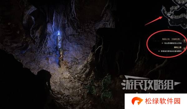 屏幕右上角会显示当前所在位置附近的小地图,小地图下方显示的是主线和支线任务目标。