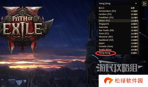 在屏幕右上角选择服务器,建议选择延迟最低的服务器。游戏加速器节点也最好选择一样的地区。