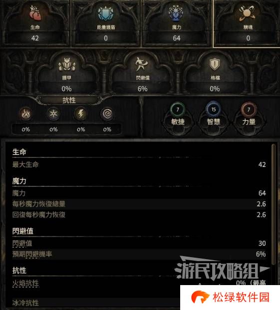 闪避值:闪避值赋予一定几率闪躲敌人打击或投射物,实际几率取决于攻击者的命中值。