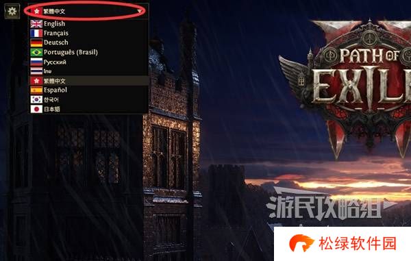 在屏幕左上角选择语言,游戏自带繁体中文。