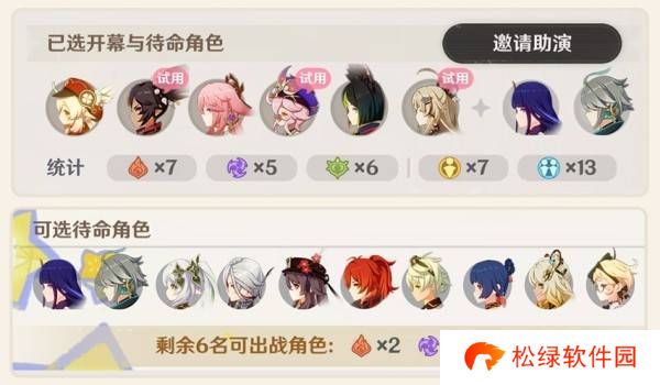 在已选角色处,还会统计各分类下的角色数量。抽取角色卡时也会展示。