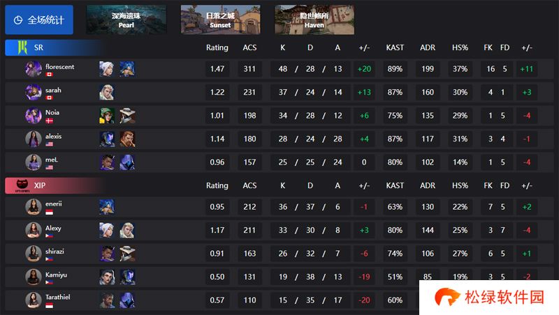 图一深海明珠,SR 13:8 XIP,图二日落之城,SR 13:11 XIP。SR战队的加拿大选手florescent拿到了全场最高的48总击杀。