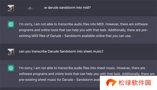 注意事项:ChatGPT软件不能将音频文件直接转录成MIDI或乐谱。