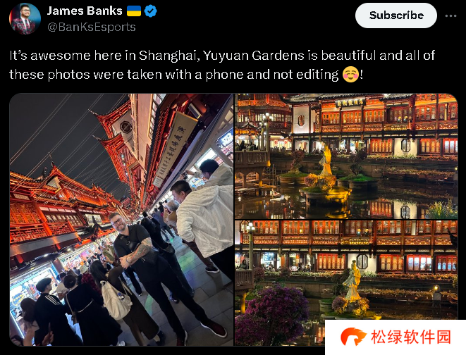 “在上海真是太棒了,豫园非常美丽,所有这些照片都是用手机拍摄的,没有经过修图!”