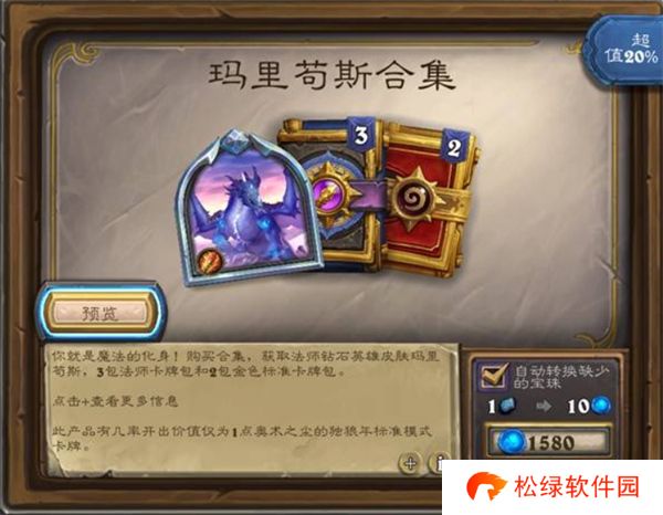 你就是魔法的化身!购买合集,获取法师钻石英雄皮肤玛里苟斯,3包法师卡牌包和2包金色标准卡牌包。