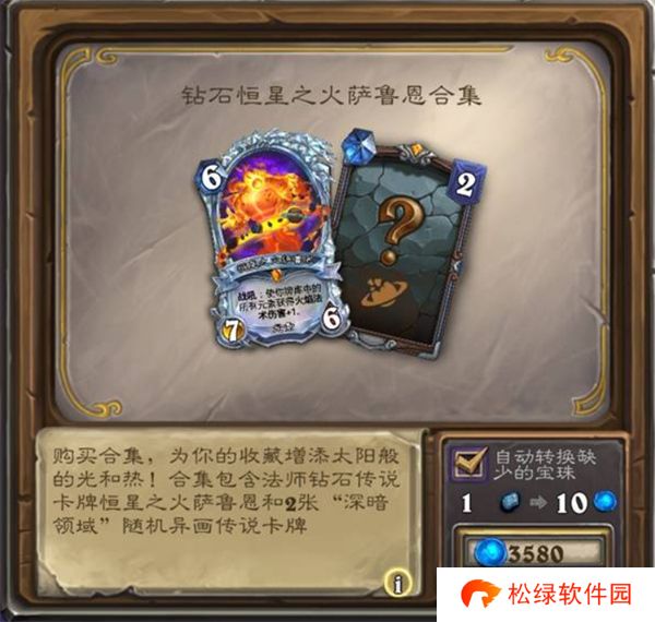 合集包含法师钻石传说卡牌恒星之火萨鲁恩和2张“深暗领域”随机异画传说卡牌。