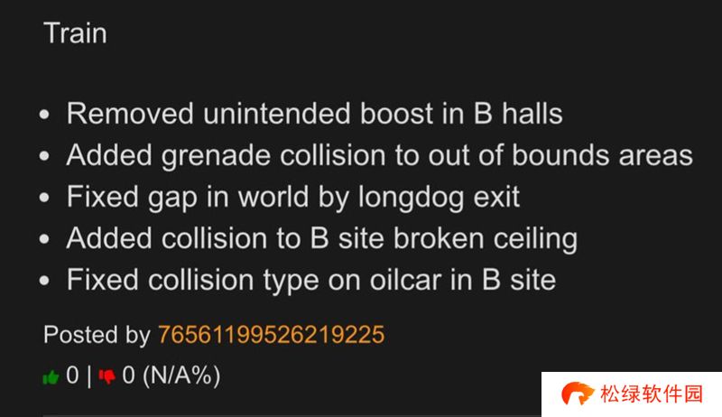 今天早上开发人员推送了一波小更新,本次更新以Train地图的修复与调整为全部内容。具体更新内容如下: