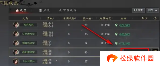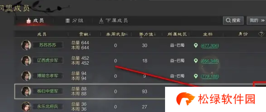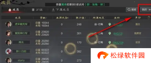 3、接着在成员列表中点击我的,即可定位到自己在同盟中的信息