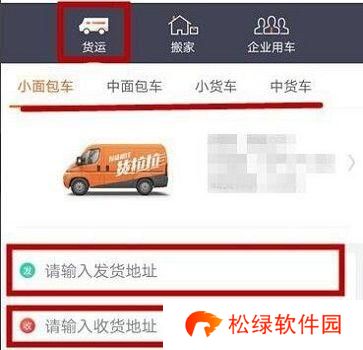 3、如果要“ 货运 ”,那么需要先选择车型,再输入发货地址和收货地址。