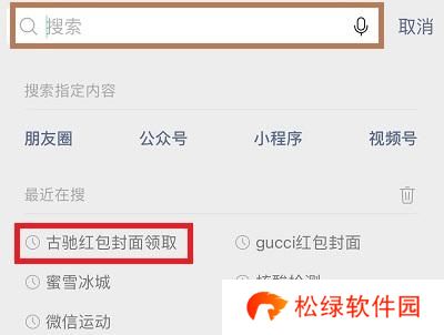 1、大家先进入微信,然后输入红包名,比如“古驰红包封面领取”。