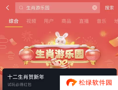 1.打开抖音,点击右上角【搜索】按钮,输入“生肖游乐园”进入即可进入游戏。