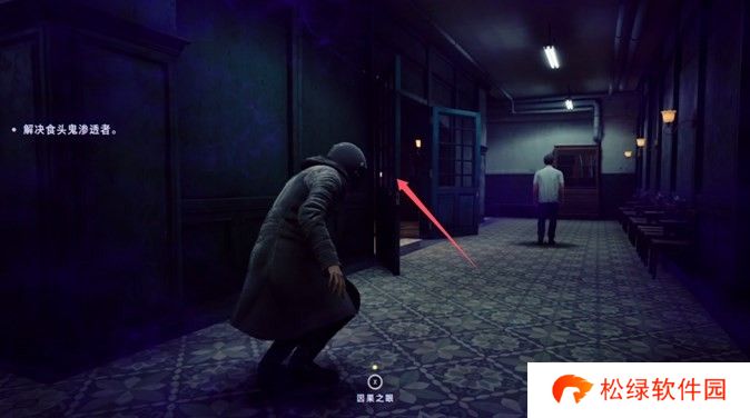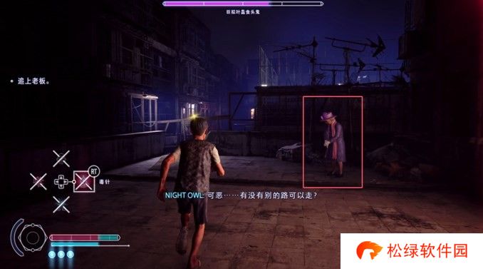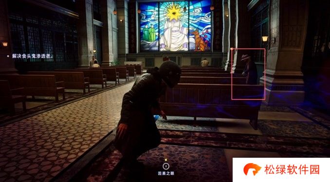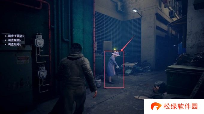 这里开启附身,往左看,就会找到神秘老太太。