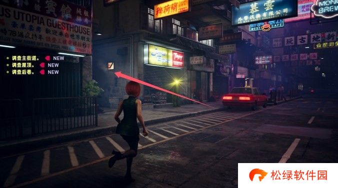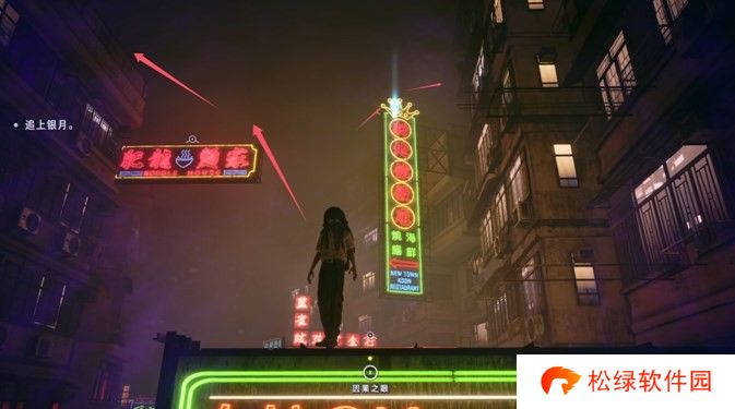 左边肥龍麵家楼顶(一定要先去天桥那触发银月上楼顶的剧情,才可以去找老太太,否则无法触发对话),那边有神秘老太太要完成对话,然后再去右边新地舘飯店触发主线剧情。