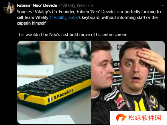 Neo:“据报道,Vitality的联合创始人Neo据称正寻求出售Vitality选手apEX的键盘,而未事先告知队员或队长本人。