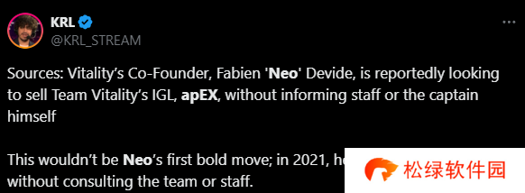 KRL:“据报道,Vitality的联合创始人Neo正在寻求出售Vitality的队内指挥apEX,而并未告知队员或队长(apEX)本人。