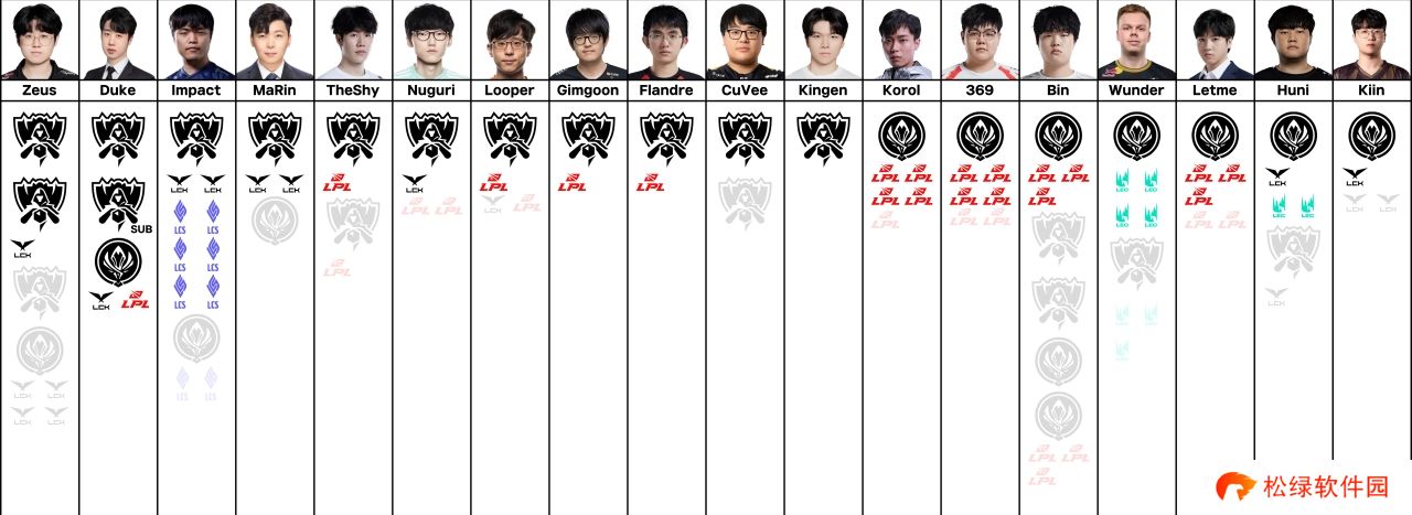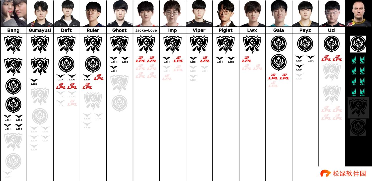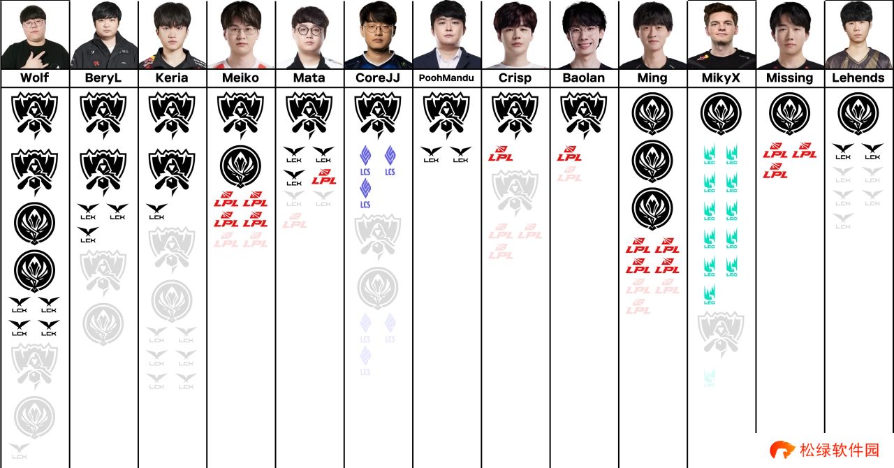 直播吧11月5日讯 今日韩国网友统计了目前最新的S赛冠军以及MSI冠军的荣誉一览,T1的选手几乎包揽了前二的席位。详情如下: