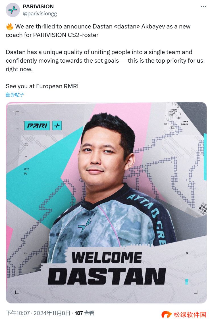 PARIVISION宣布签约教练dastan,填补了F_1N离开的空缺。