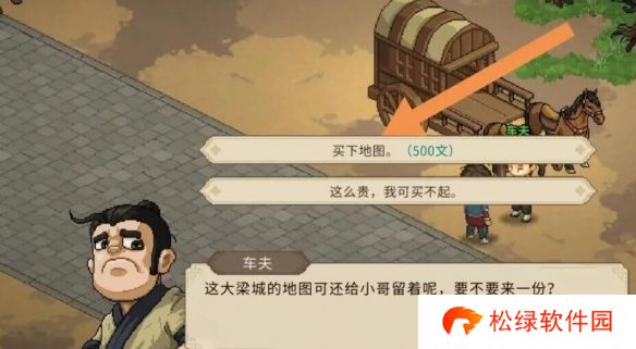 2、在和npc对话的时候,选择【地图】,然后再交付花费500文钱,选择【买下地图】;