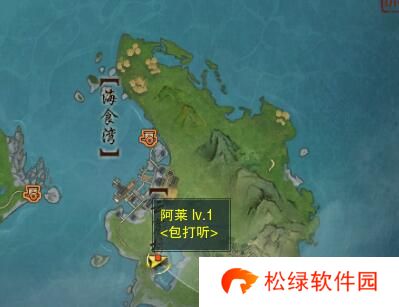 2、前往【海食湾-云宽村】找npc【阿莱】然后互动渔具;