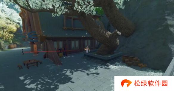2、然后去三岔路口碑铭小池子边找到【楚楚】对话后跟随【楚楚】,将【沙棘果】放进光圈里;