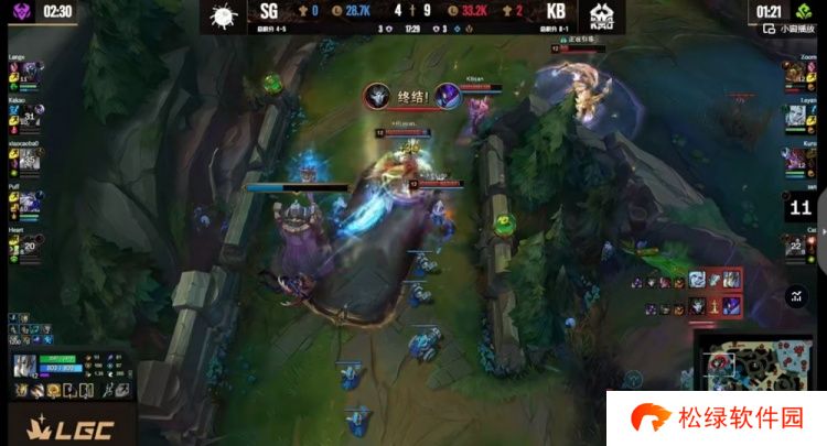 【33:05】远古龙继续争夺,KB先开打,Zoom鳄鱼TP人群没被秒掉!Leyan佛耶戈已经拿下了远古龙!Kuro阿萝拉罩大+san烬远程架狙开始收割!KB直接摧枯拉朽赢下团战,结束比赛!