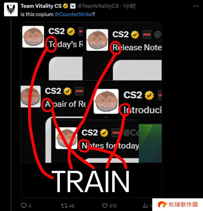 Vitality官方账号分享了自己发现的官推信息。在CS官方账号最近的动态中,如果挑出首字母就是TRAIN。恰好是de_train。