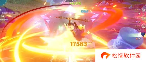3、使用班尼特释放大招,香菱吃班尼特攻击力加成后开启大招,期间注意给副c进行充能,同时躲避敌人的下落伤害。