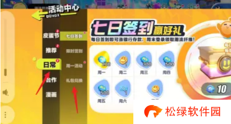 2、然后需要依次点击左侧的【日常】-【礼包兑换】功能。
