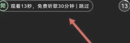 点击右上方的【免】,然后观看广告后就能获得免费听歌时长。