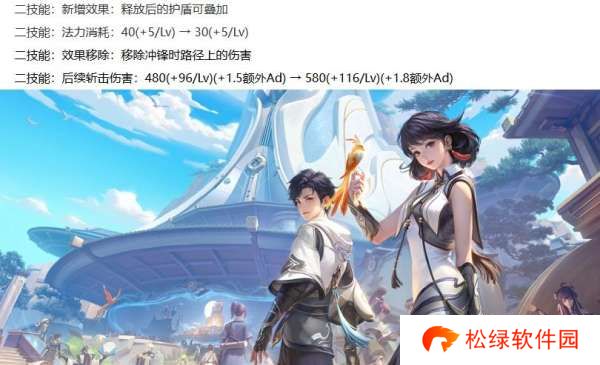 坦克元流之子加强:2技能的护盾可以叠加,2技能的蓝耗降低,移除2技能的路径伤害,2技能的后续斩击伤害大幅增加。