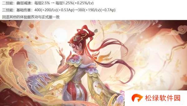 芈月削弱:2技能的减速效果前中期降低,后期减速不变,大招的前期伤害降低,后期伤害增加,回调其他改动。