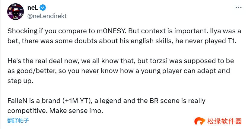 neL:FalleN的七十万转会费和m0NESY的概念不同