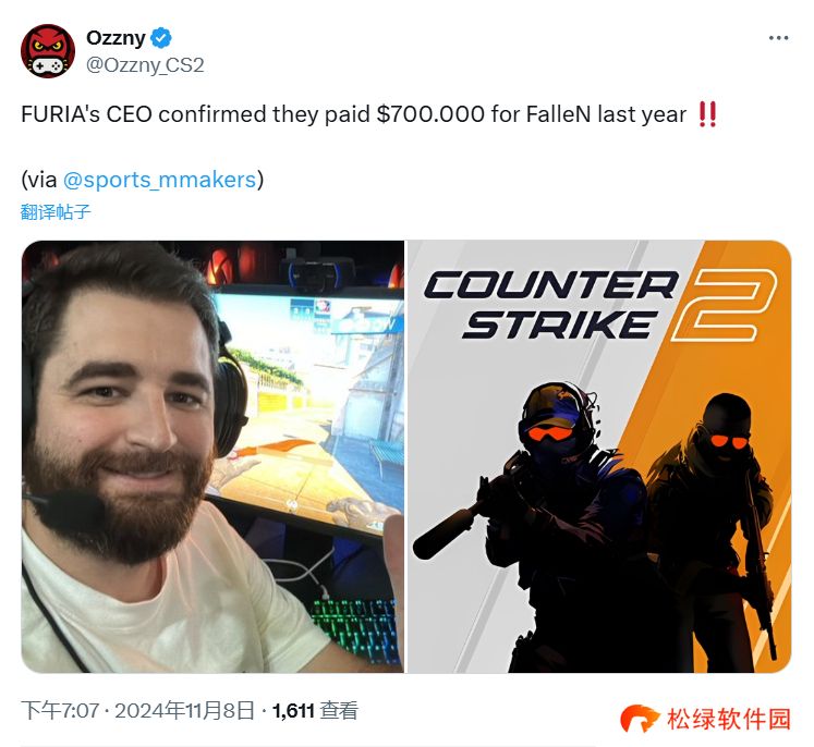 FURIA CEO的证实,他们去年为签下巴西传奇选手FalleN支付了70万美元。