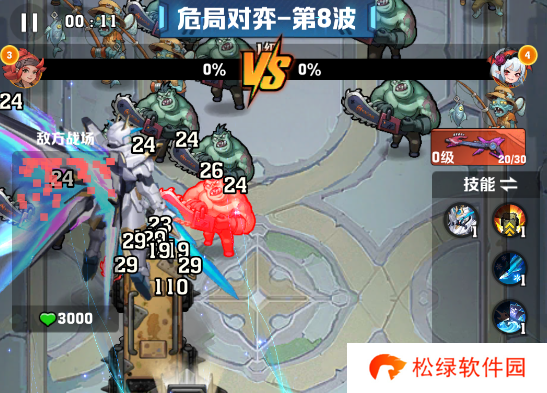 顶部会有进度条,谁先达到100%谁就能获得胜利,其次谁的防线先归零也算败者,在右边技能位置可以切换技能以及羁绊,点击敌方战场可以看到对方的战斗情况。