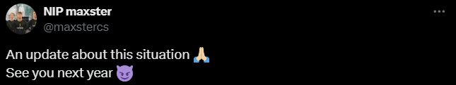 Ninjas in Pyjamas选手maxster在社媒发布长文解释近日情况: