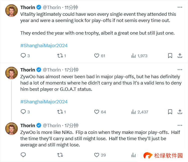 Thorin:ZywOo不是GOAT,他更像是NiKo